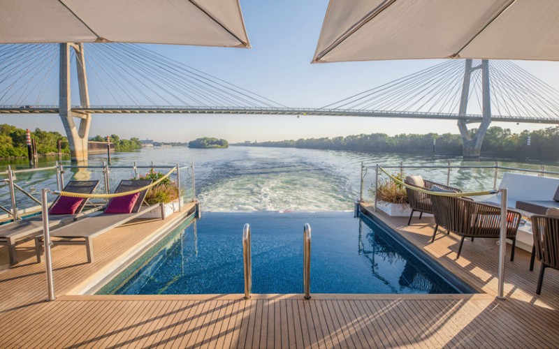 Le MS AMADEUS Provence, construit en 2017, est un des plus beaux navires en service sur les fleuves de France. Les 8 suites avec balcon extérieur accessible sont un rêve pour les amateurs de croisières fluviales. Les cabines des ponts intermédiaire et supérieur disposent d’une grande fenêtre panoramique coulissant vers le bas en balcon français. Les petites fenêtres hautes (qui ne s’ouvrent pas) du pont principal offrent une bonne vue. Toutes sont aménagées avec élégance et de très bon confort. Salon avec pont extérieur, Amadeus Club pour lire au calme, pont Soleil avec piscine, excellente cuisine et vins de choix complètent l’expérience à bord.