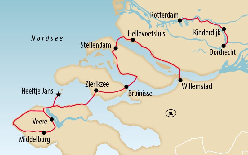 Unsere heutige Tour führt uns zunächst nach Middelburg, die Hauptstadt Zeelands – einst nach Amsterdam die bedeutendste Stadt der Niederlande. Danach radeln wir weiter durch die weite, sonnige Landschaft der Halbinsel Walcheren mit Stränden, Dünen und Wäldern. Anschliessend bringt uns das Schiff zurück nach Dordrecht.